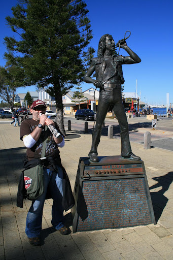Cerca del Pier, hay un parque con un césped perfecto, que bordea las vías de un tren que no vimos pasar. Justo al otro lado encontramos una estatua homenaje a Mr. Bonn Scott, fallecido cantante que no nació en la ciudad, pero en la que si creció musicalmente, formando incluso una banda con un pequeño curriculum de éxitos, lo que vino después es otra historia, historia del Rock´n´Roll.