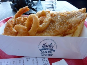 Volvemos al puerto para probar, por obligación y sin hambre el mejor Fish & Chips de la ciudad, después de pedir pasamos el tiempo vigilando a las gaviotas
