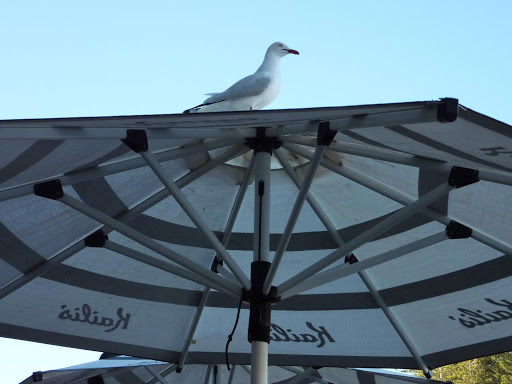 que aprovechan el mínimo descuido o que alguien deje la mesa para arramplar con los restos de comida, incluso peleando como bestias entre ellas. Es divertido ver a los camareros ir a toda pastilla con pulverizadores de agua para espantarlas.