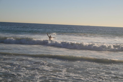 antes de que se vaya el sol y se ponga el tema complicado, el agua esta helada, pero todo sea por probar el Indico, prueba realizada, al salir se esta a gusto pero en el agua no se disfruta ya que la corriente es muy fuerte y te menea para donde quiere.