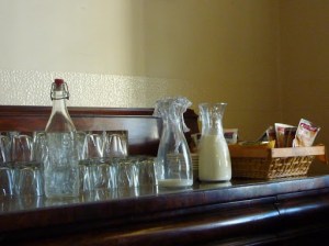 El desayuno en New Norcia fue espartano, en una sala sin calefacción, y con el agua en unas botellas que recordaban a las antiguas de La Pitusa
