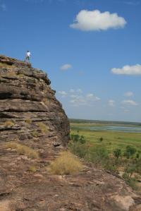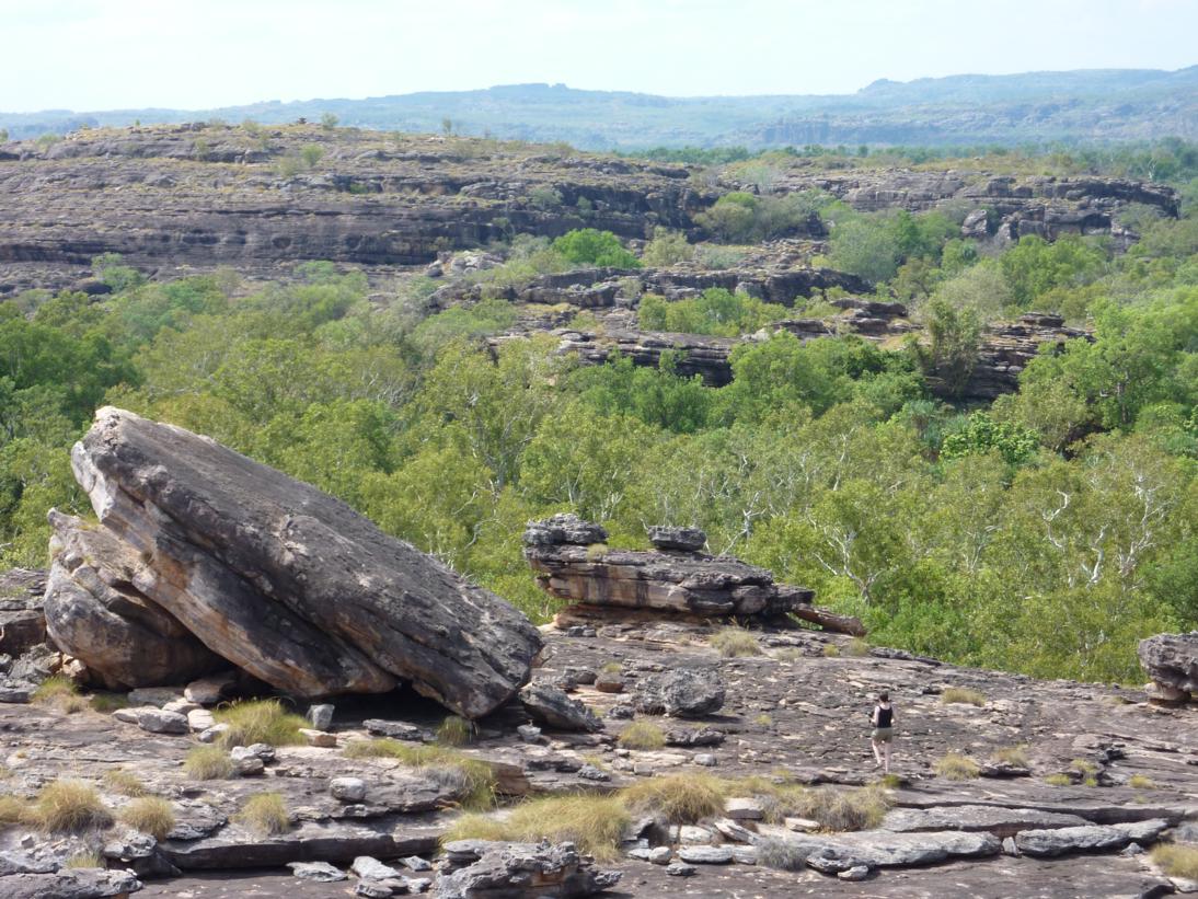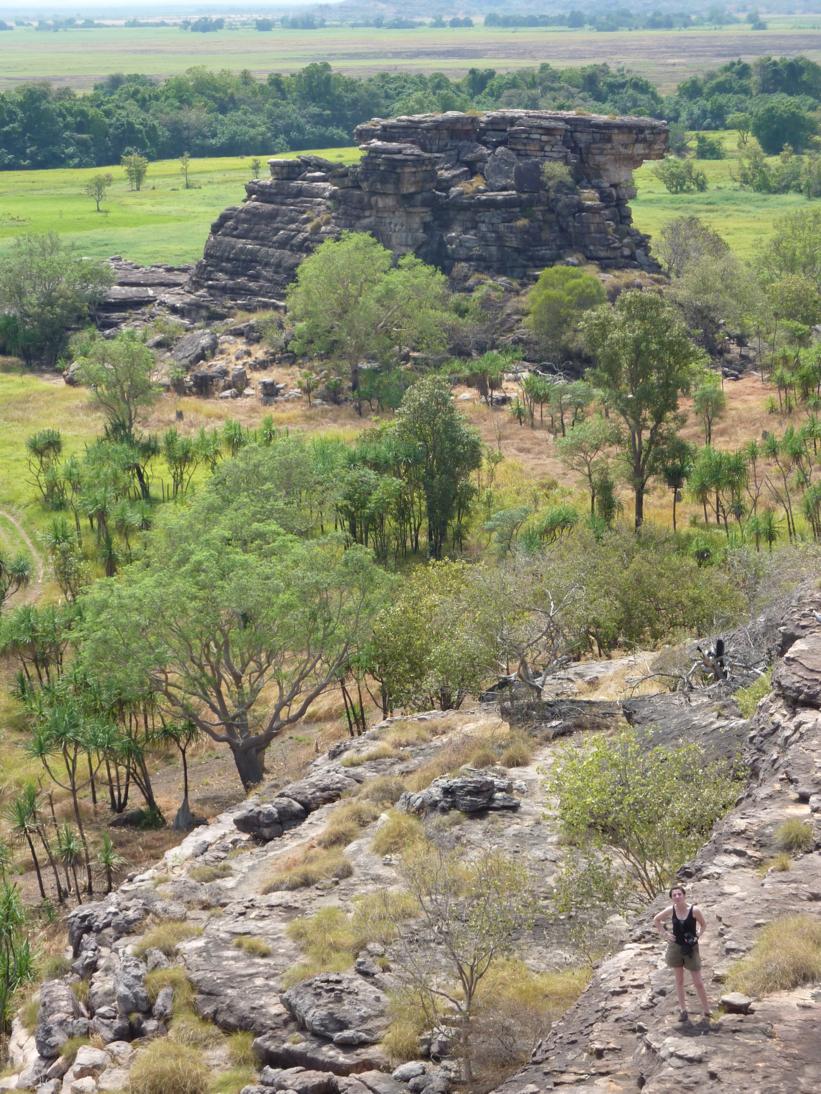 Nos lo tomamos con calma, y la verdad es que la visita merece la pena, Ubirr es un sitio increíble, además de las pinturas, se sube a través de la roca a un punto desde donde se ven unas vistas increíbles. La piedra roja sobresale de la verde llanura, como si estuviéramos en una película y esto fuera una ciudad olvidada. Las rocas montan unas sobre otras, creando formas extrañas y con equilibrios a veces imposibles. Parece que todo haya sido uno y se este desmontando a cachos.