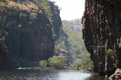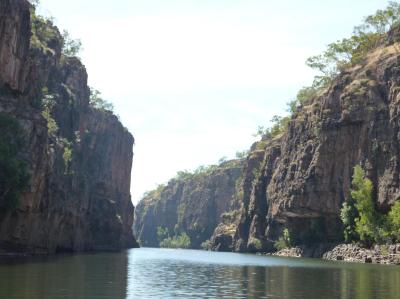 La visita al parque Nitmiluk, concretamente a Katherine Gorge, se puede realizar de tres maneras, la primera es caminando, lleva unos cuantos días y tiene zonas realmente complicadas de acceder evitando el meterte al agua, la segunda es en canoas, divertida y en un día puedes llegar a ver tres gargantas, la mayor dificultad es que entre unas y otras hay que llevar la canoa a hombros, mi segundo problema es que probablemente me ahogaría. La tercera es en un tour en barco, que durante aproximadamente cuatro horas, te pasea por el rió, cambiando de barco en barco, para cada una de las Gorges.