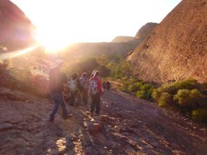 Y lo merece, sin duda, se trata de hacer un recorrido a través del parque de Kata Tjuta, son unos ocho kilómetros con bastante dificultad y hay que empezar pronto porque luego el calor es agobiante.
