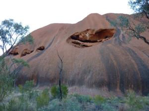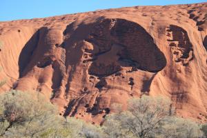 Hay varios recorridos posibles, pero realmente son partes de uno mas grande que da la vuelta a la roca, junto a este camino perimetral, hay bastantes carteles muy mal cuidados que cuentan cosas acerca del lugar, sobre la espiritualidad de la zona para los locales, también señalan las zonas de rituales que recomiendan no fotografiar, otros carteles hablan de las características geológicas de la roca, cuentan que todo lo que vemos, Uluru, es una única pieza de roca tipo iceberg es decir que la parte enterrada es siete veces mayor que lo que vemos, curioso. Un iceberg en tierra firme, bien, parece una buena similitud.