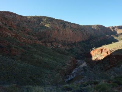 de un paseo de alrededor de una media hora hasta una grieta en una montaña de apenas cuatro metros de ancho y con una altura de cuarenta, el sol del mediodía inunda esta cañada durante un rato, el resto del día esta totalmente en sombras, aunque es una visita extremadamente turística por la sencillez y la proximidad con Alice, es totalmente recomendable. No solo la grieta sino también el camino, que te hace pasar entre rios, arboles secos y un montón de Ghost Gums, arbol tipico de la zona.