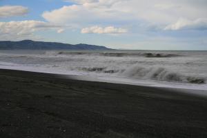 Afortunadamente nada mas salir de Christchurch, vemos la primera y mas clara diferencia entre Tasmania y NZ, aquí la carreteras son excelentes, no quiero ni imaginar el intentar mover esta mole entre las mil curvas de cada puerto Tasmano. La segunda diferencia aparece también enseguida, las playas de arena fina, aquí en NZ se han convertido en playas de piedras o de arena negra. El efecto visual es impactante, sobre todo si la primera visión la obtienes un día en el que el mar esta totalmente revuelto con grandes olas en un agua de color gris oscuro. Seguimos hacia el norte cruzando algún pueblo, sin demasiadas casas y con muchos de sus negocios cerrados.
