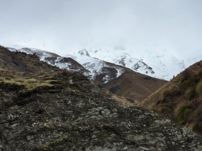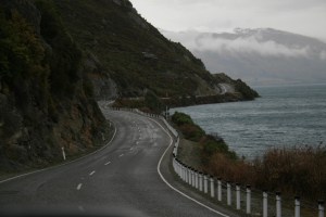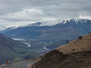 Dejamos Wanaka y elegimos acercarnos a Queenstown por el camino mas corto pero mas enrevesado, a través de una montaña que da acceso a unas pistas de ski, la carretera aunque avisan de precaución esta perfectamente limpia de nieve, eso si nos encontramos algún desprendimiento, que cubre la casi entera la carretera a consecuencia del terremoto. Aunque durante la estancia en Wanaka hemos leído acerca del terremoto ahora es cuando por primera vez vemos sus consecuencias y estamos a mas de 300 kilometros del epicentro.