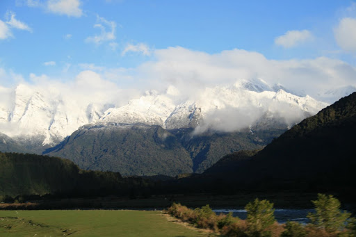 Aunque no era la primera vez durante el tiempo que llevábamos en NZ que veíamos montañas nevadas, el llegar a Glacier Country era otra cosa.
