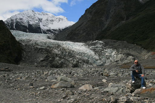 Primero Franz Joseph en el que hacemos un pequeño walk que te lleva a un alto desde el que se disfruta del glaciar y de las montañas que rodean la lengua de hielo que baja hasta nosotros.