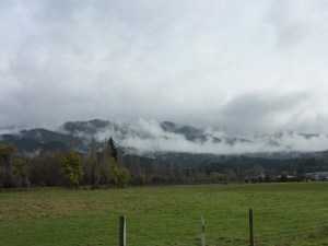 Dejamos Motueka cruzando el Kahurangi National Park en dirección a la costa oeste, la carretera cruza una zona de valles verdes, rodeados en todo momento por espectaculares montañas nevadas en la mayoria de los casos cubiertas por la niebla.