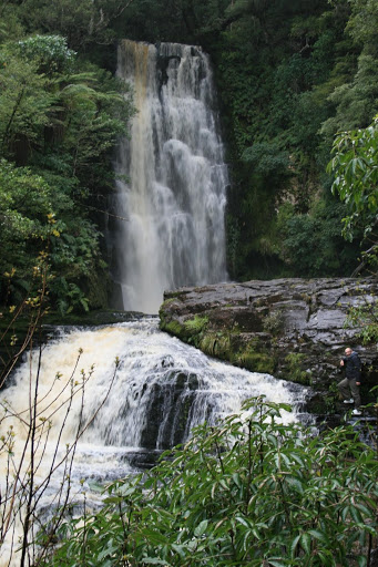 Ante el fracaso, cambiamos el plan y hacemos el camino hasta las McLean Falls, unas cataratas que tienen la curiosidad de que muy poca gente las ve. No es que estén ocultas, el problema es que 100 metros antes encuentras otras bastante bonitas y el camino parece acabarse por lo que la gente se da la vuelta, si continuas un poco mas en un camino lleno de barro llegas a las autenticas que te permiten subir hasta casi su base trepando por la resbaladiza roca.