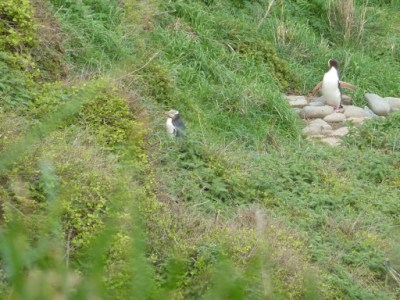 También visitamos Nugget Point, una cala cercan a un faro en la que es habitual el avistamiento de pingüinos, aunque la hora no es la mas adecuada vemos a un par de ellos que salen del mar para buscar refugio en tierra donde pasaran la noche en sus madrigueras construidas entre la hierba.