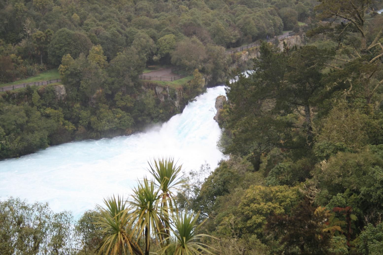 También hacemos una parada en las Huka Falls, la fuerza del agua en el cañón que lleva a las cataratas es brutal y dicen que el agua que pasa por aquí en un segundo llenaría dos piscinas olímpicas. La lluvia constante nos no deja disfrutar de la visita como merece, también nos perdemos la visita en barco a la base de las cataratas ya que debido al mal tiempo no esta disponible. Hacemos un ultimo de aprovechar el día visitando Orakei Korako, un parque volcánico en el que la lava ha formado lo que llaman la tierra de los mil colores, pero no hay suerte, el lugar parece un desierto, no hay ningún coche en el aparcamiento, y la visita parece absurda cuando la lluvia no nos dejaría hacer el recorrido.