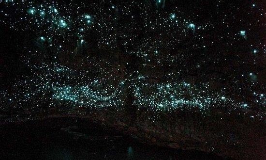 Llegamos a las famosas Waitomo Glowworm Caves y cogemos un tour para visitarlas, se trata del típico recorrido por cuevas viendo estalactitas y estalagmitas en el que te cuentan por milésima vez que tardan cien años en crecer un centímetro, que no se pueden tocar por que se estropean y que si miras una en concreto boca abajo y con los ojos entornados veras que parece un monje franciscano con una espada samurai. Pero lo bueno viene después, nos montamos en una barquita que se mueve a brazo, es decir hay instalados unos cables que cruzan la cueva y el guía va tirando de ellos para mover la barca, lo primero que nos enseña son unos cuantos mosquitos que en estado de larva para alimentarse cuelgan una especie de pequeños hilos viscosos para que otros insectos queden atrapados y así devorarlos, para atraer la atención de estos insectos, la larva lo que hace es brillar de un color verde fosforito increíble, ver unos cuantos es curioso, pero cuando llegamos a la gruta principal pasa a asombroso, miles o cientos de miles o millones cuelgan del techo e iluminan el habitáculo como si fuera una noche estrellada, no se puede hacer ruido porque si se asustan se apagan, así que el silencio junto con el brillo de las larvas crea un ambiente mágico, se que suena cursi pero es así Salimos encantados de la visita y parece que le vamos dando la vuelta a los ultimos y horrorosos días.
