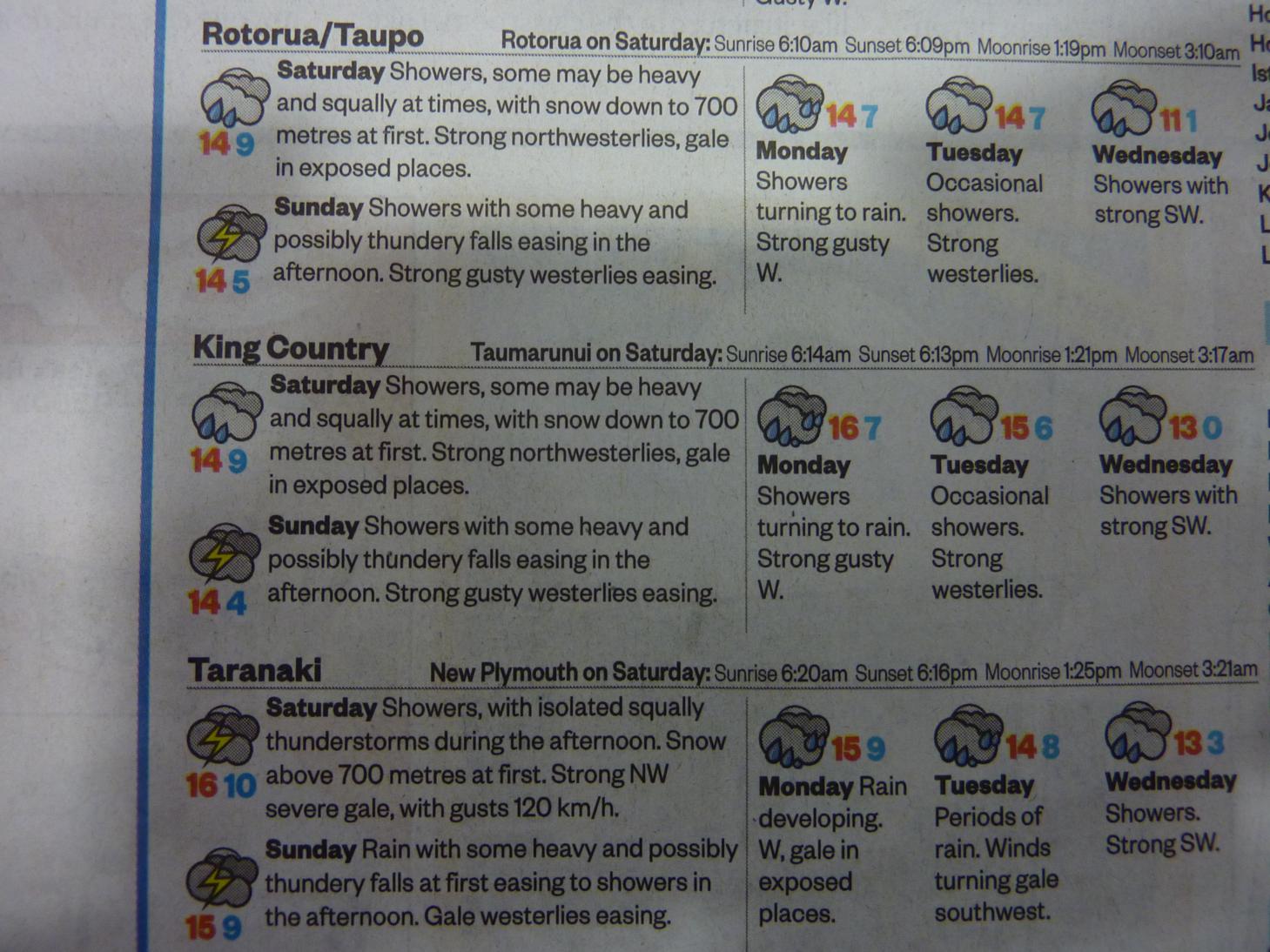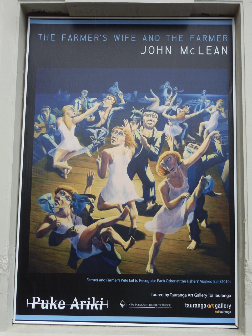 Nos dirigimos a la ciudad mas grande de la zona sin saber que hacer, parar y esperar o seguir para adelante dejando cosas sin visitar, para pensarlo entramos en Puke Ariki, un museo de New Plymouth en el que pasamos un buen rato escondidos de la tormenta, la verdad es que no ésta mal y la exposición temporal que hay dedicada al pintor John McLean (no McLane que se de que pie cojeáis), sus pinturas no es que sean “bonitas” pero si que son interesantes y curiosas.