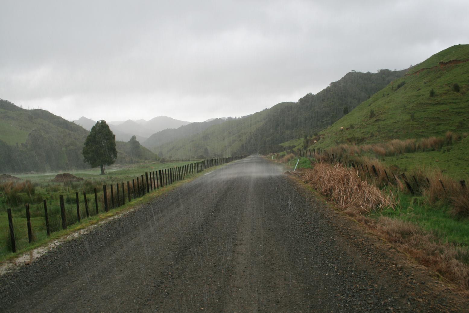 Salimos con la idea de no esperar ya que no tiene pinta de que vaya a parar en los próximos días. Seguimos hacia el Norte por la carretera de la costa y hacemos noche en Awakino, en un Hotel que hace un par de años había ganado un premio al mas encantador hotel rural, vale, pues a ver como lo explico, aparcamos y en mitad del aparcamiento hay una pick-up con un jabalí en la trasera, destripado para mas señas.
