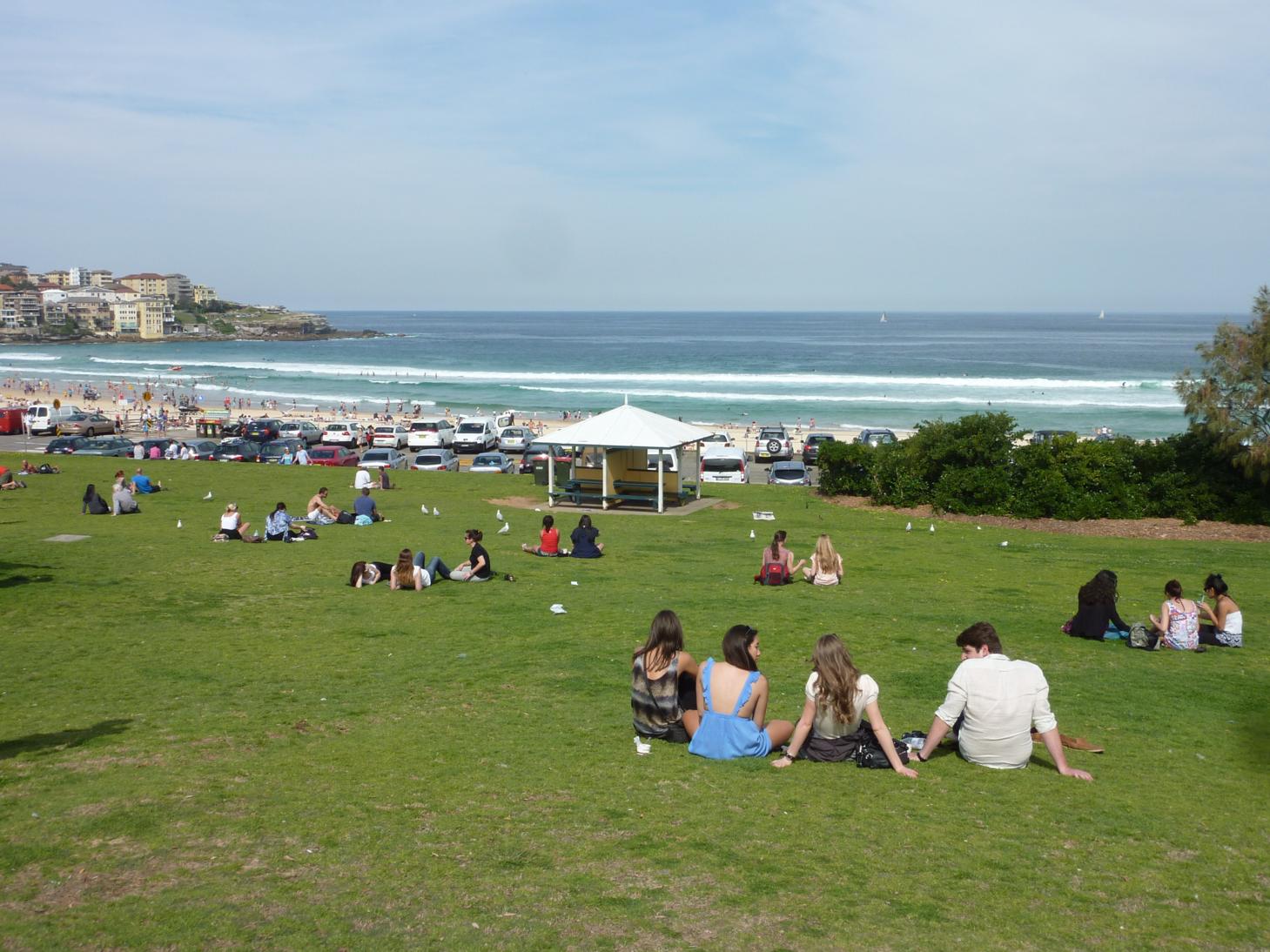 Una de las excursiones obligadas desde el centro de Sydney es a uno de sus barrios llamado Bondi Beach, una playa situada al Este de la ciudad y que en los días con buen tiempo se juntan miles de personas para disfrutar del sol y la arena, también encuentras una linea de césped donde si no eres muy amigo de la arena puedes tumbarte a disfrutar de las vistas, justo entre uno y otro tienes un mural donde muchisimos graffiteros