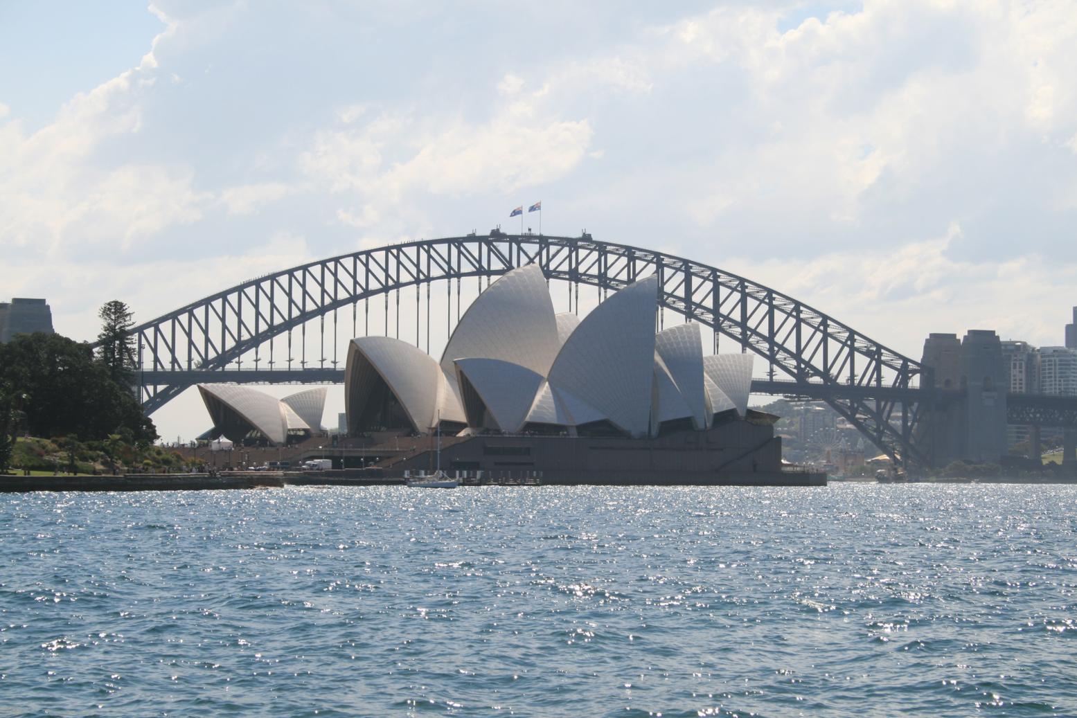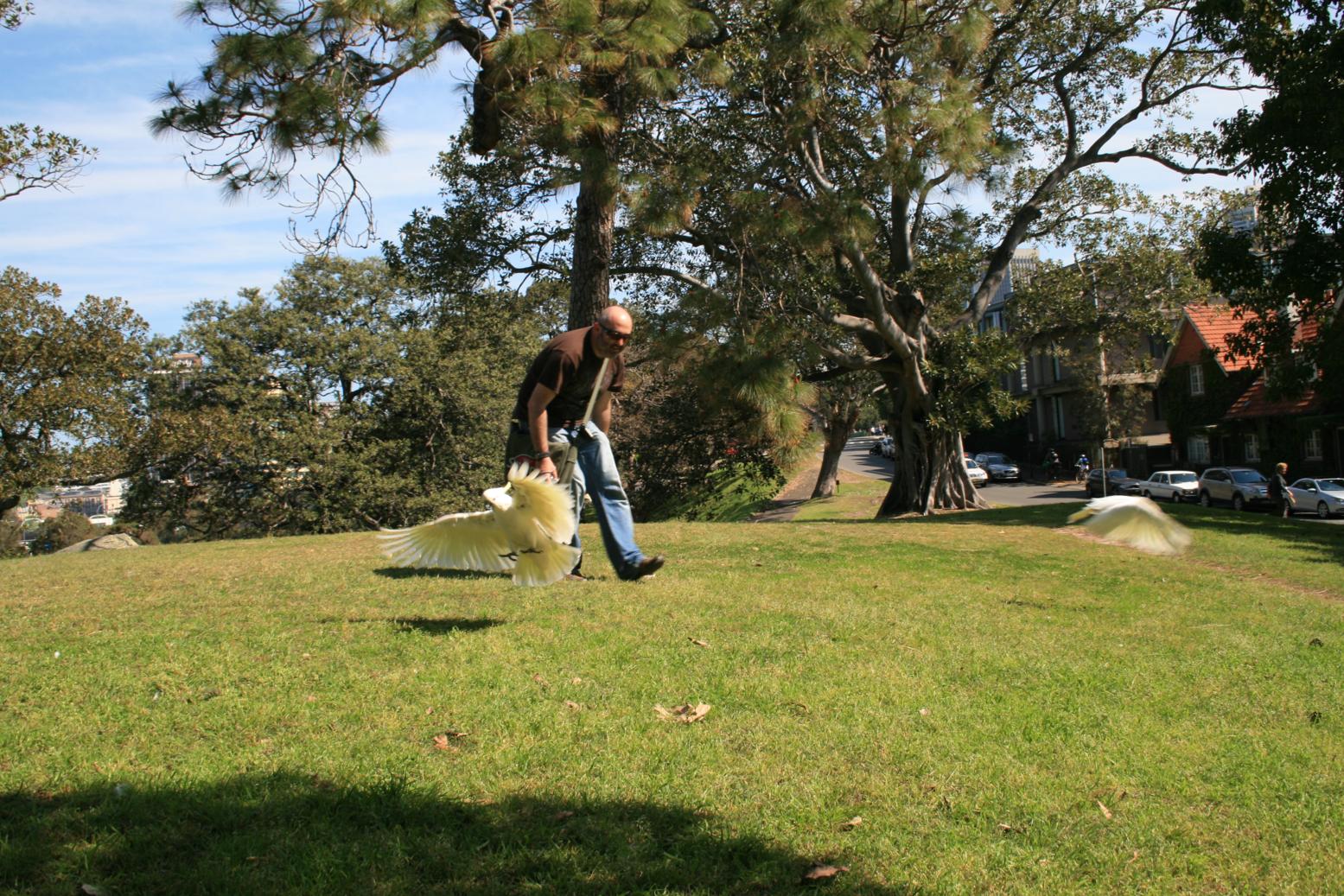 Bordeamos el agua sin perder la pista a las cacatúas blancas que revolotean por nuestras cabezas, y llegamos a McQuarrie Chair desde donde se tiene uno de los mejores puntos para fotografiar la Opera y el puente que cruza a la otra orilla.