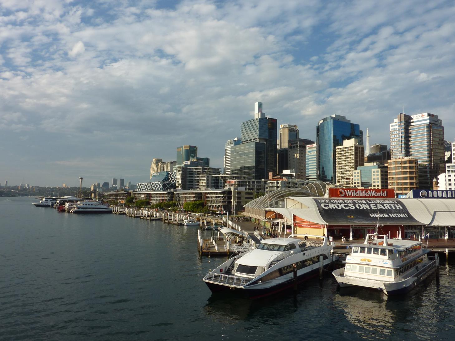 El Domingo nos levantamos con tranquilidad para tomar un brunch estupendo al borde de la bahía, hasta llegar al agua la ciudad se veía vacía pero en cuanto nos acercamos al embarcadero vemos miles de personas que se dirigen a los diferentes ferries para aprovechar el buen tiempo descansando en alguna de las playas que rodean la ciudad y que son mas fácilmente accesibles mediante estos barcos, eso si la espera es amenizada por un grupo de músicos que con el Digeridoo intentan ganarse la vida.
