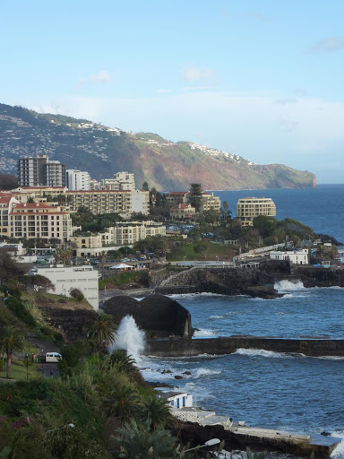 Nos alejamos un poco de la multitud y nos vamos hasta Lido, la zona mas nueva de Funchal, aquí los hoteles se acumulan mezclados con parques acuáticos, empresas de alquiler de coches y decenas de empresas que ofrecen tours. Aunque los comercios tienen en general el mismo aspecto dejado, aquí puedes encontrar alguna excepción en forma de franquicias extranjeras agrupadas en algún centro comercial. Si te dejas caer rodando te encuentras una vez mas con el omnipresente mar, aquí en Lido han diseñado un recorrido que bordeándolo recorre la costa dejando unas vistas estupendas, la única pega es que debido a la orografía de la isla te encontraras unas cuantas cuestas rompe piernas, afortunadamente han colocado fuentes para ayudarte a recuperar.