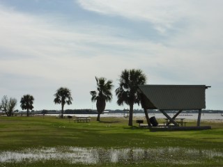 Aprovechamos para asomarnos al golfo de Mexico y visitamos el Cypremont State Park, un pequeño espacio ajardinado con acceso a la playa, que en verano seguramente estará muy solicitado pero durante nuestra visita somos practicamente los únicos en la zona. En la carretera que lleva a este parque vemos un montón de viviendas que tienen una característica en común, todas están elevadas sobre una especie de zancos, suponemos que sera para evitar las continuas inundaciones en la zona. Algunas de las familias incluso tienen enormes autobuses adaptados para alejarse y alojarse en ellos durante el tiempo que la zona este cubierta de agua