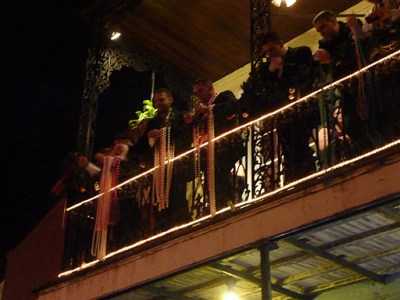 Una vez que el ambiente ha conseguido la temperatura adecuada empieza el intercambio de collares, no es que sea algo que suceda a diario, pero si te acercas durante el Mardi Gras o en noches señaladas seguro que lo veras.