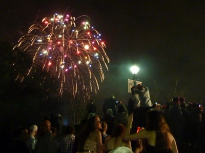 Muy al estilo Neoyorquino, cuando llega la medianoche, una cuenta atrás precede la iluminación y descenso de una figura iluminada que da inicio al año. Después de muchos abrazos y muchos besos, en el Riverfront, en la orilla del río Mississippi empieza un espectáculo de fuegos artificiales, no es nada del otro mundo, pero a la gente le entusiasma y celebran con aplausos casi cada explosión.