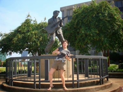 Seguimos nuestro particular homenaje acercándonos hasta la Elvis Presley Plaza donde esta instalada una estatua muy famosa del cantante en una de sus poses mas características y que es perfecta para vacilar.