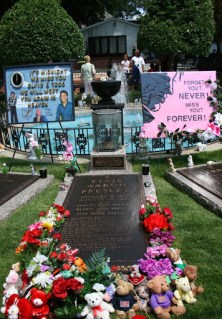 Después de ver todas las salas con las reliquias, trajes y recuerdos de Mr. Presley se sale al jardín para sacar alguna foto del sitio donde descansa y poco mas.