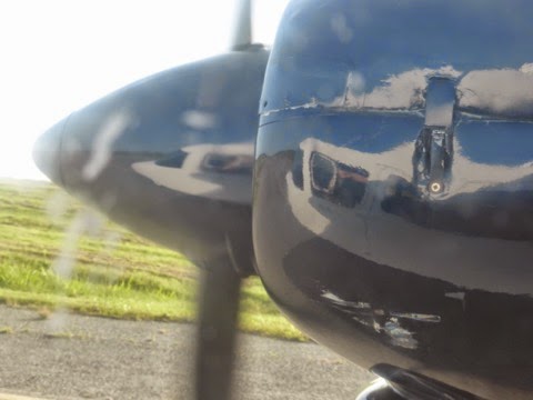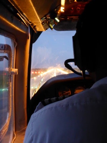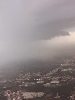 Pero es que ya no queda nadie en la pista salvo nosotros, y parece que el tiempo está cambiando. Una vez arriba, se prepara una gran tormenta, con truenos (que no oímos), relámpagos, lluvia a raudales y las nubes bajan tanto que no se ve la pista, con lo cual no podemos aterrizar y estamos durante casi quince minutos dando vueltas alrededor del mismo, intuyendo las instrucciones de la torre y oyendo las verdades a medias que nos cuenta el piloto para evitar que entremos en pánico.