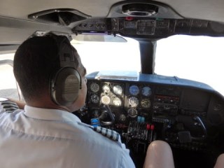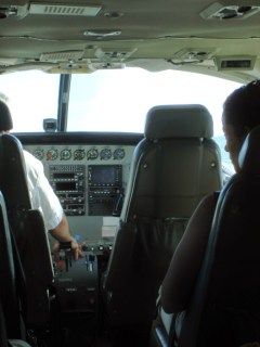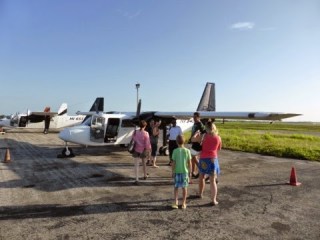 Nosotros tenemos suerte, y nos meten en una avioneta con una familia de holandeses, un matrimonio con tres niños, y una pareja de argentinos.
