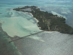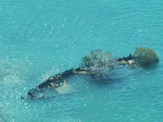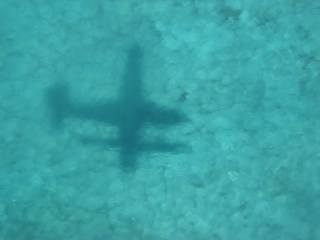 Durante el vuelo y gracias a las indicaciones del piloto que vuela muy bajo, sumergidas en las cristalinas aguas azules, vemos pequeñas islitas e incluso dos barcos hundidos que sobrevuelan los pájaros buscando una superficie sobre la que descansar. También se puede apreciar en las zonas poco profundas animales marinos que nadan cerca de la superficie.