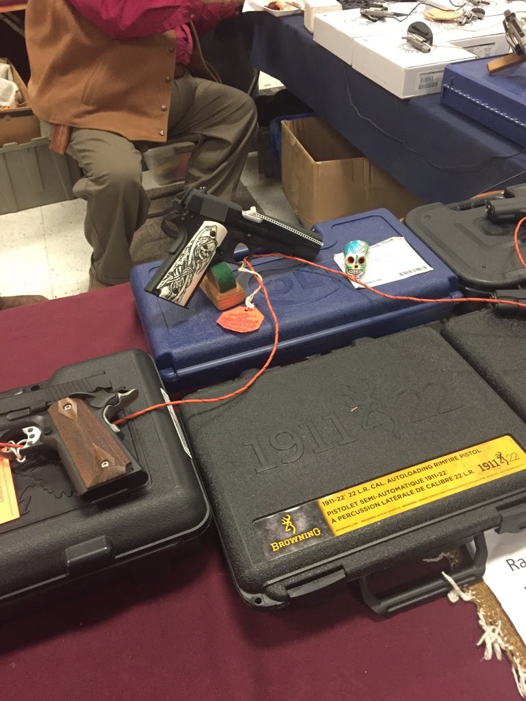 Una vez en la puerta y antes de pagar la entrada se pasaba primero por un puesto de la Asociación Nacional del Rifle que invitaba a inscribirse y después por un control de seguridad en el que inutilizaban temporalmente las armas que portaban los visitantes de la feria. El sistema consistía en colocar una brida en la ventanilla de eyección en el arma impidiendo usarla… siempre y cuando no llevaras encima una tijera que cortara la brida.