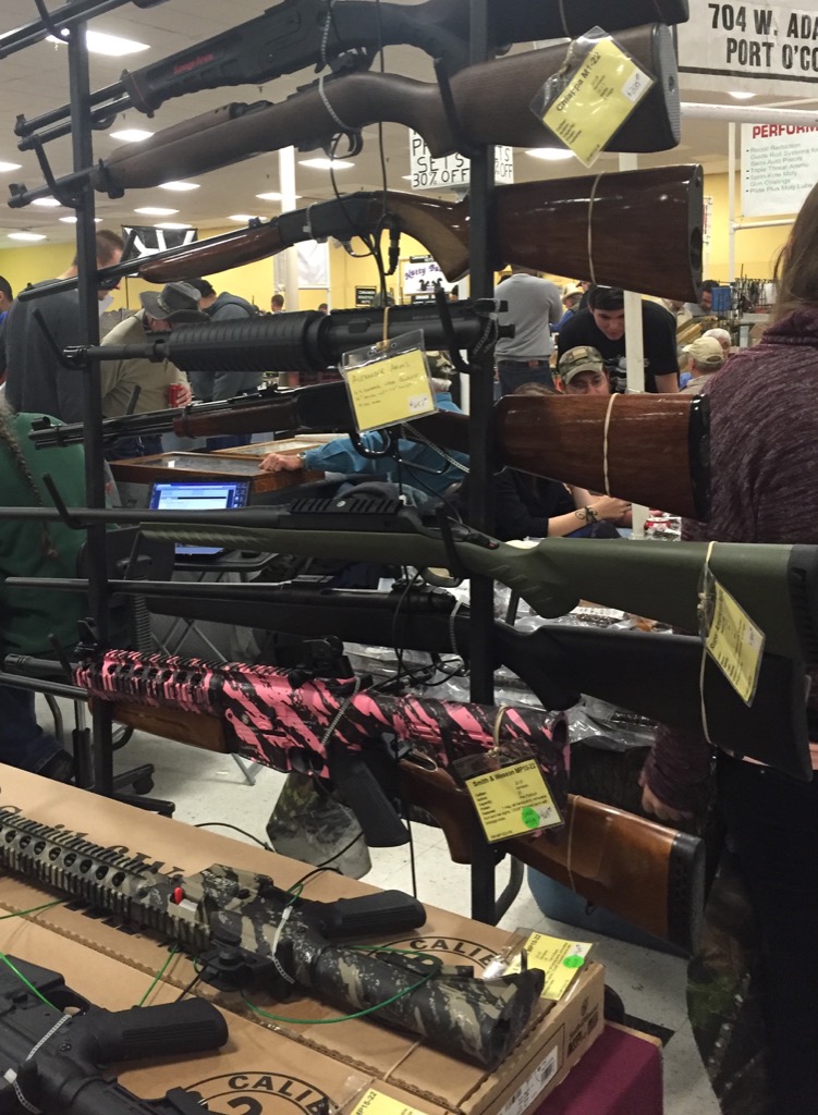 El tema de las armas llevaba unos días omnipresente en la prensa. Por una parte, a partir del 1 de enero de 2016 había entrado en vigor una ley en Texas que permitía llevar las armas a la vista. Y por otro Obama estaba haciendo lo imposible por prohibir la venta de armas en ferias como la que íbamos a visitar. El motivo: a diferencia de las armerías donde desde que compras el arma hasta que te la llevas, pasa un tiempo en el que se hace una comprobación de tus antecedentes psíquicos y penales, en las ferias sales con el arma colgando de la cintura, o del hombro si es un fusil.